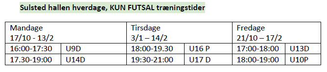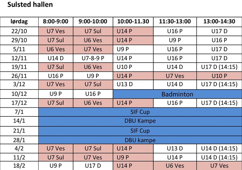 Husk at give tiden til et andet hold hvis i ikke selv bruger den, brug telefonlisten på Sulsted IF hjemmeside