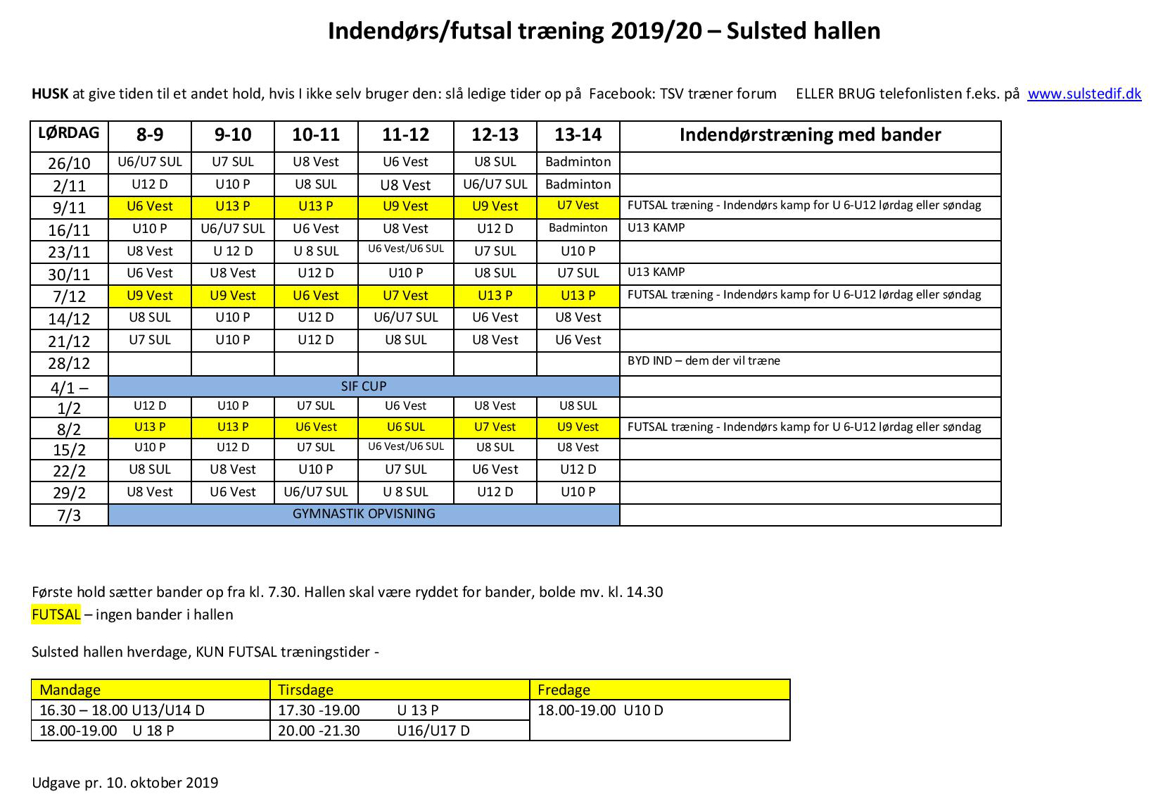 Futsal Og Indendørs Træningstider 2019/20 stort billede