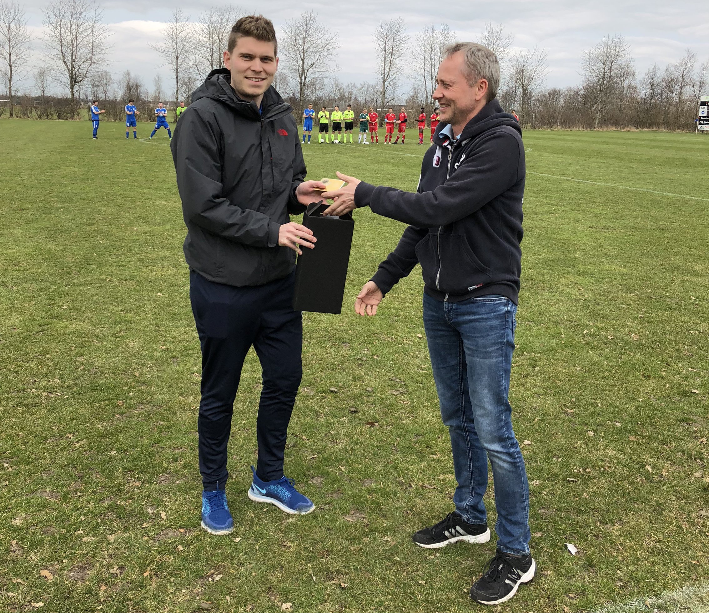 Tue Mikkelsen 250 kampe og Simon Fisker med 200 kampe, blev i søndags til serie 1 kampen mod B52, lykønsket med et par flasker vin og en plakette med navn og kampantal.