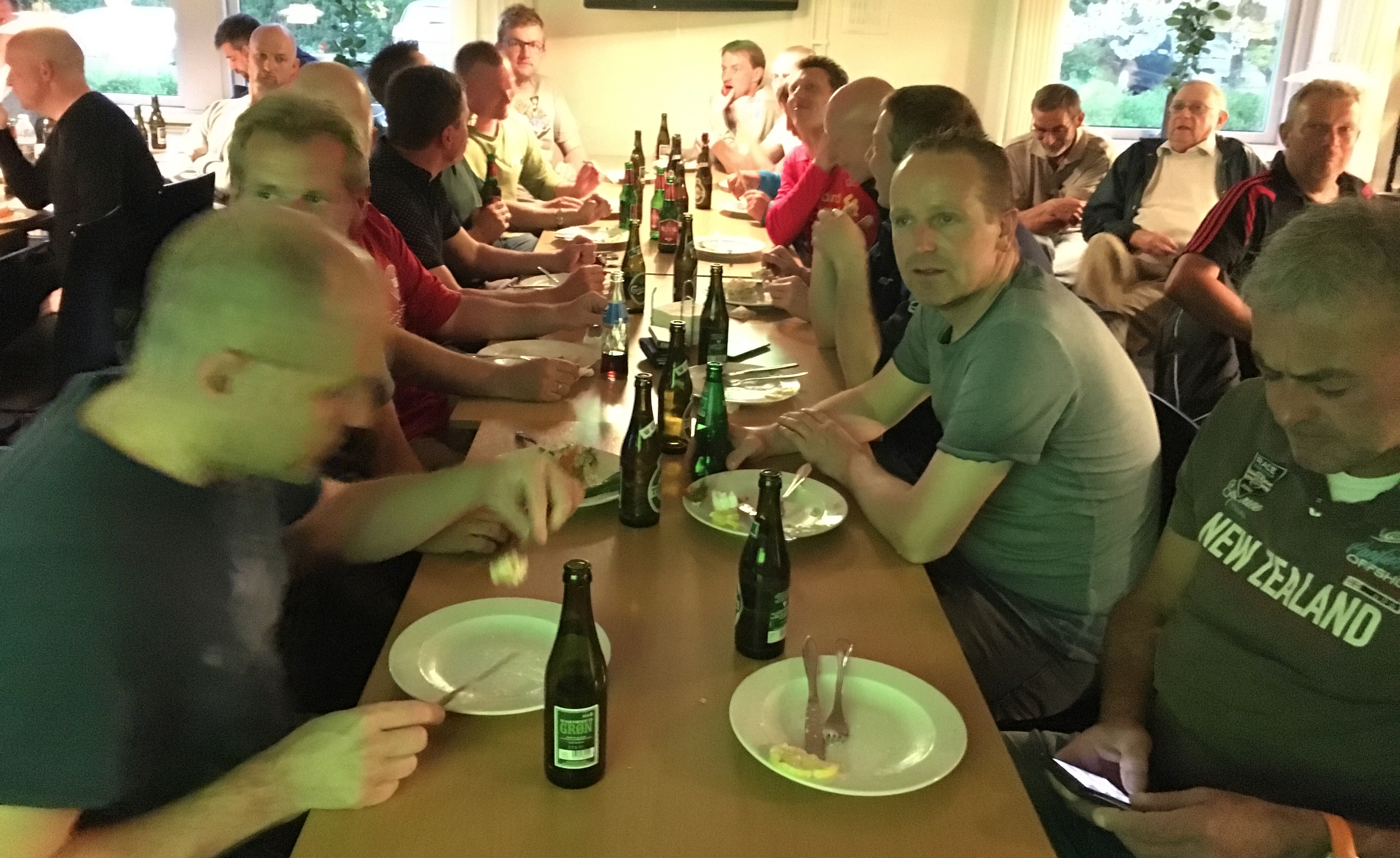 Bagefter var der arrangeret fælles spisning for små 30 mand i klubhuset, hvor der blev serveret stor stjerneskud mens der blev vist UEFA Europa League finale på storskærm.