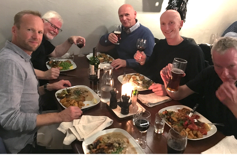 Da Aalborg minigolf hurtigt løb tør for øl gik turen ind til Aalborg, hvor OMC og Preben havde bestilt bord på Paprika, her ventede en rigtig god 3 retters menu, hovedretten var selvfølgelig schnitzler, som er den eneste hovedret der serveres på Paprika.