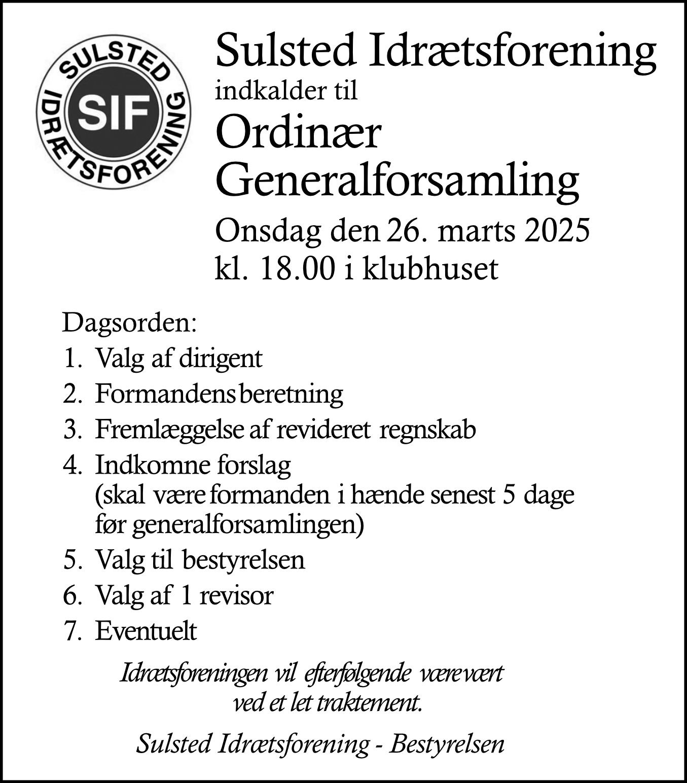 Ordinær generalforsamling 26. marts 2025