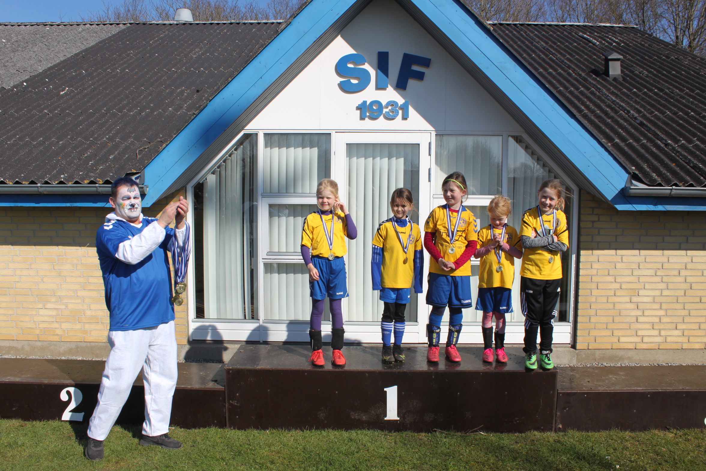 Den lokale maskot ”Sulle” uddelte foruden påskeæg også både medaljer og highfives til alle spillende børn, som betrådte podiet efter endt puljeturnering.